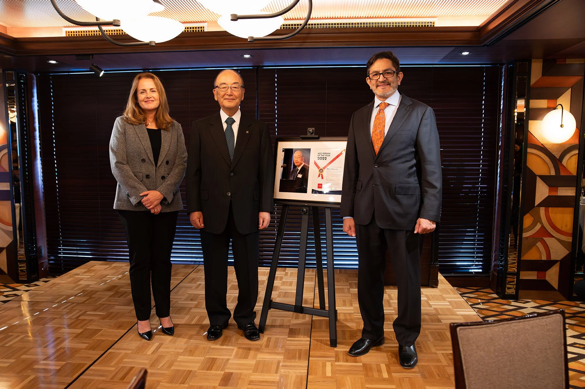 On November 9, 2023, the ACCJ recognized Akio Mimura as the 2022 ACCJ Person of the Year. He was chosen for his efforts to bring the Japanese and international business communities closer together during his nine years as chairman of the Japan Chamber of Commerce and Industry. The person of the year is normally honored in spring of the following year, but the coronavirus pandemic caused a delay.