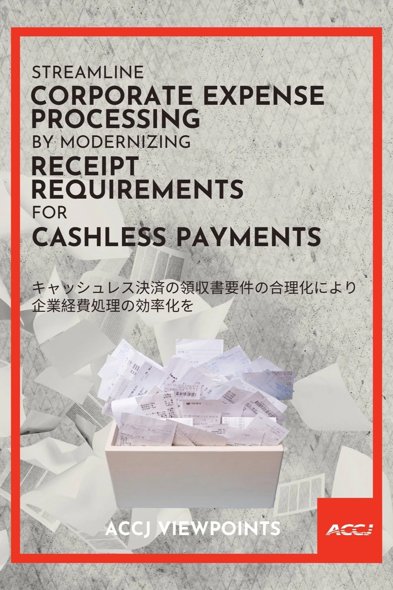 ACCJ White Papers are extended documents expressing in detail the Chamber's official position on a specific issue or on a broad range of issues. White papers are often the combined product of multiple committees or task forces.