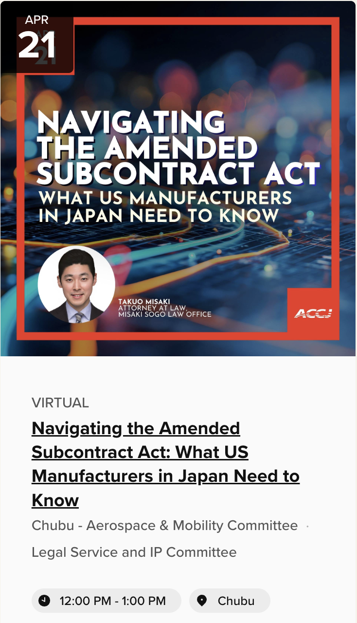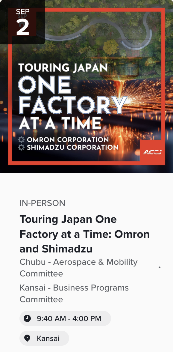 (Approval required from both Chair and Vice Chair, and limited to ACCJ members who work for manufacturers or related companies.)