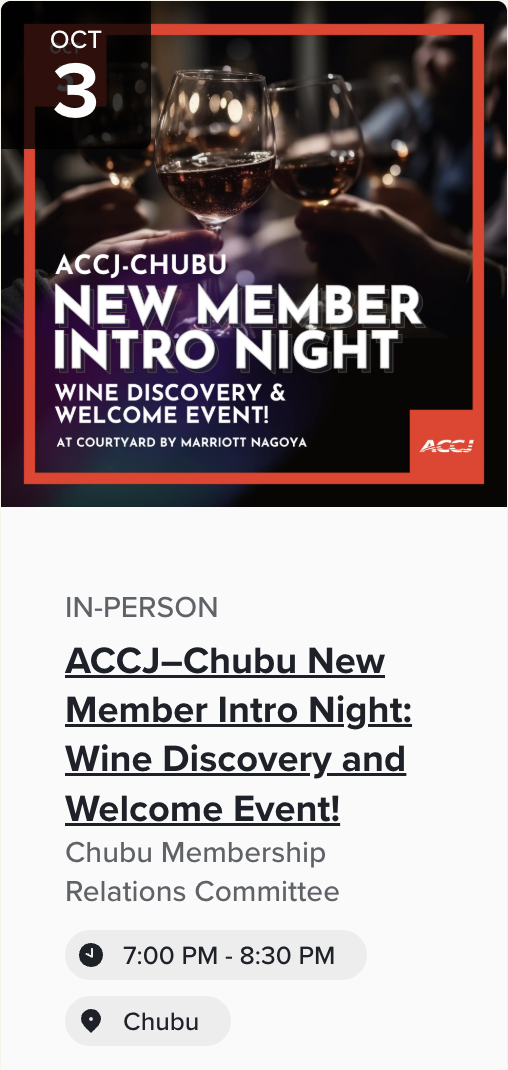 We actively reach out to new members and encourage their participation in ACCJ events in a number of ways including through new member orientation meetings every quarter and a mentor program.
