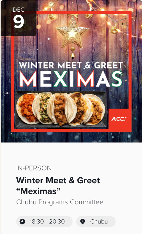In addition, the committee is also responsible for organizing some of the established annual events that provide members with enhanced cultural learning experiences in a social atmosphere. These include the Champagne Ball, which brings 250 people from all over the local international community, making it the largest of its kind in Nagoya.